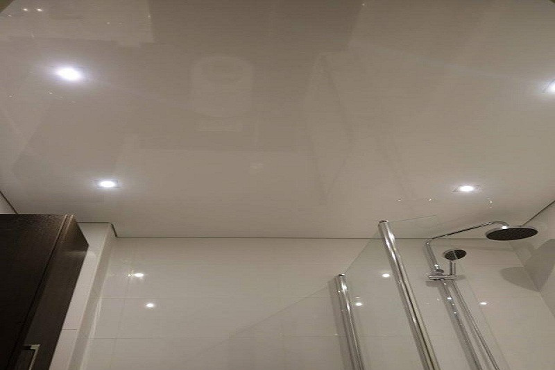 • Матовый фактически представляет собой более бюджетный вариант тканевого, так как белый ПВХ не так хорошо поглощает блики, но значительно дешевле и есть возможность установить его в ванную – влага ему не страшна.