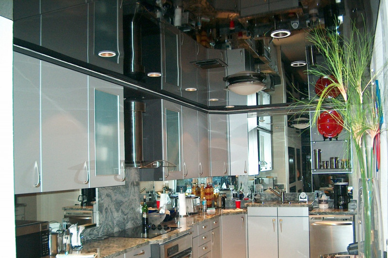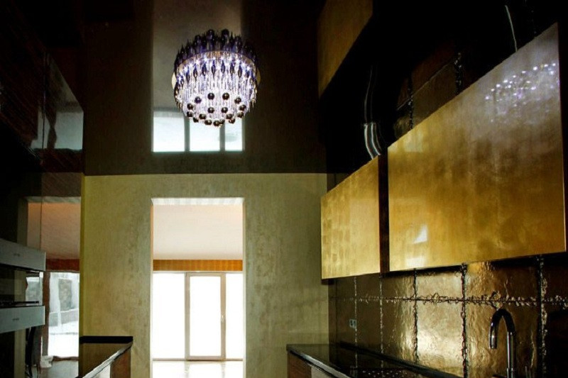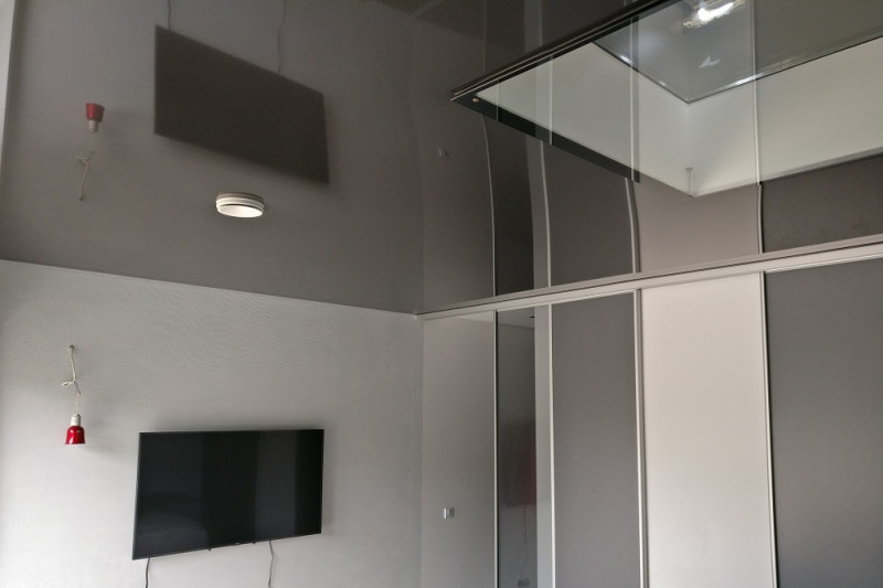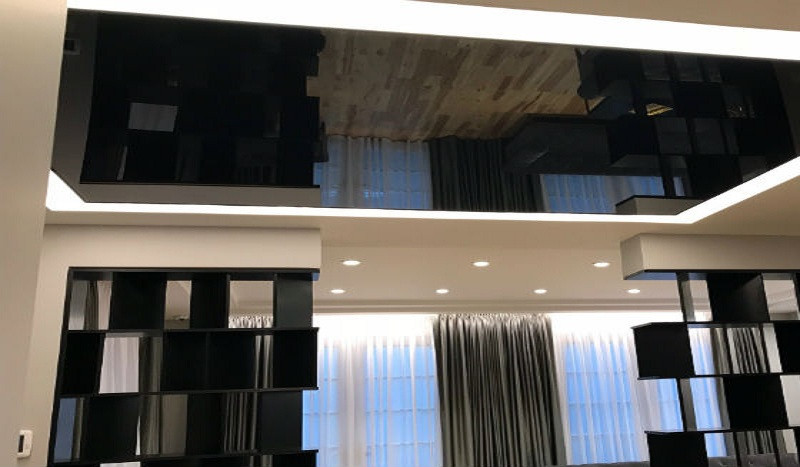• глянцевый делает комнату заметно больше благодаря способности зеркалить пространство – выглядит черным зеркалом;