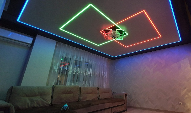 Сделать это может наш мастер на замере (по Люберцам выезжаем бесплатно), учтя количество естественного света, особенности помещения и его назначение. Например, в спальне светодиодная лента может быть менее мощной.