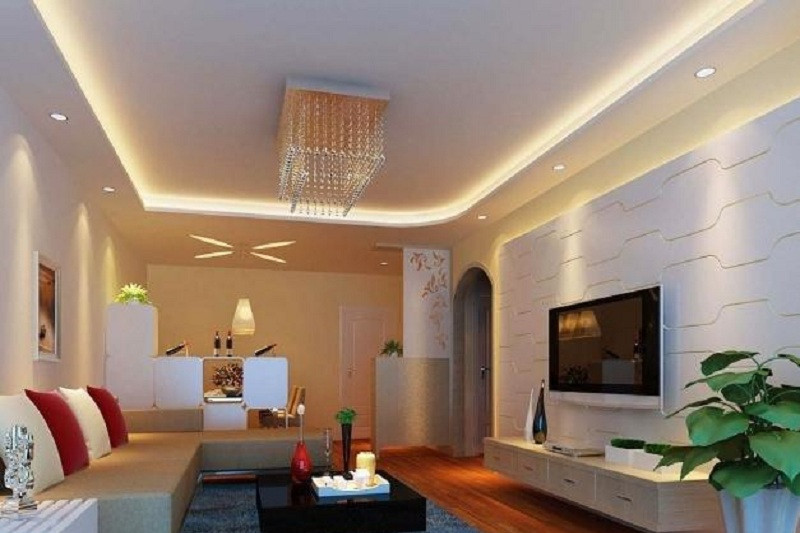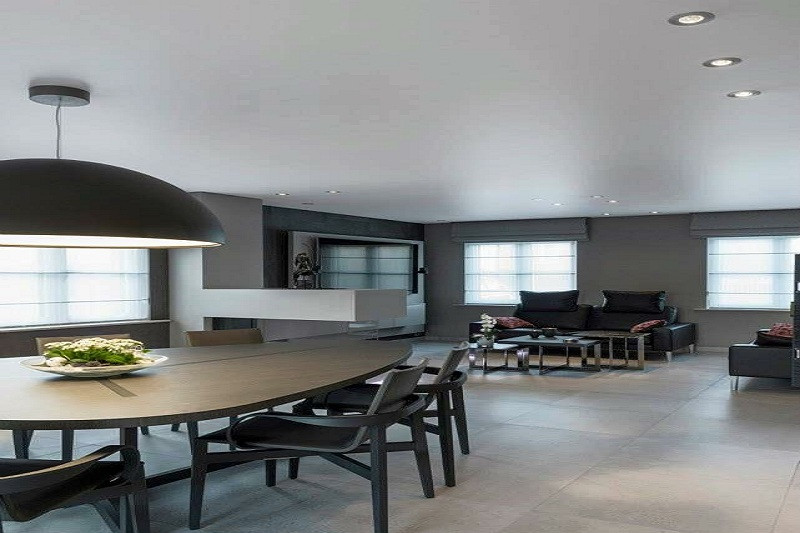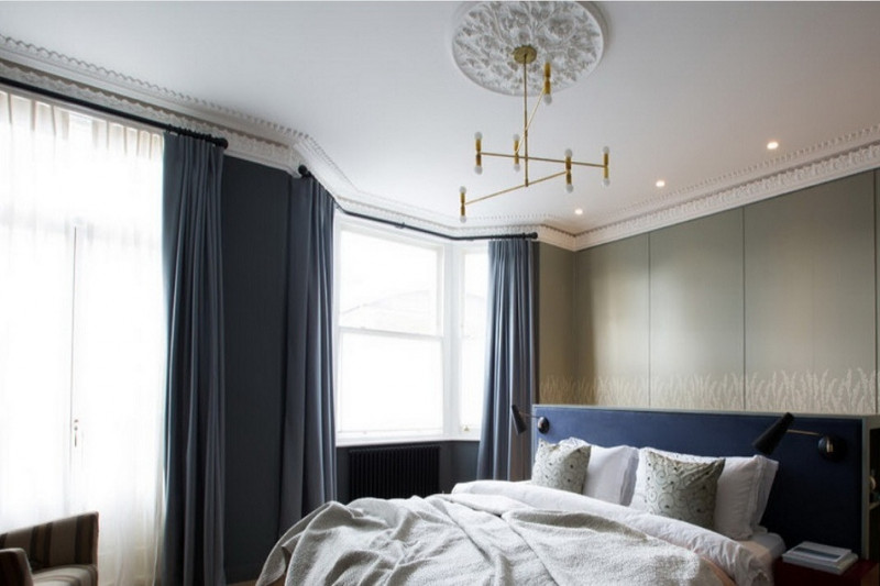 • В матовом потолке лучше всего смотрятся световые линии, трековые светильники, парящие конструкции, встроенные карнизы с подсветкой.