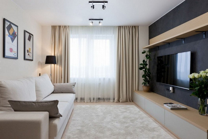 Чтобы пространство стало более уютным, стоит выбрать матовую фактуру натяжного потолка. Она не отбрасывает бликов, не отражает предметы, такой потолок всегда смотрится мягко и ненавязчиво, особенно в базовых светлых цветах.