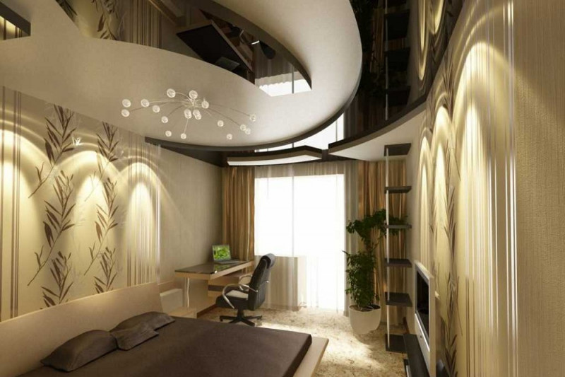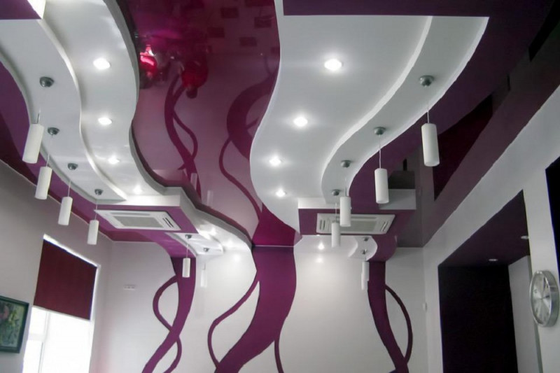 • Скрыть коммуникации. Если в комнате есть вентиляционные каналы, камеры видеонаблюдения, трассы кондиционера, перепады высот черновой поверхности, то многоуровневая конструкция решит эти задачи.