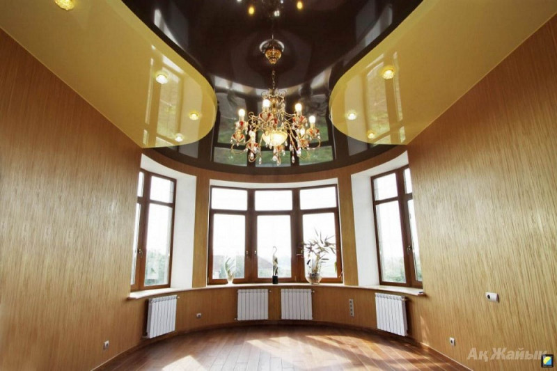 • Разделить комнату на смысловые зоны. Например, у вас гостиная смежная с кухней, а напольное покрытие в одном цвете. В этом случае подойдет вариант с несколькими уровнями потолка.