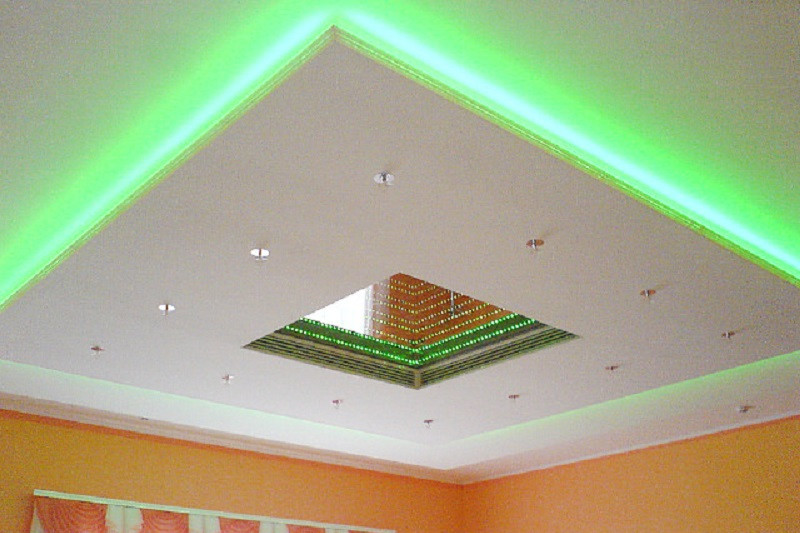 • Встроить любую систему освещения. Световые линии, контурный свет, треки с продольной засветкой, споты на шинопроводе – все это и многое другое легко уместить в запотолочное пространство многоуровневой отделки.