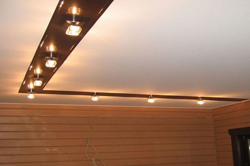 Одинаково хорошо сочетается с точечными светильниками, люстрами, световыми линиями, парящими потолками.