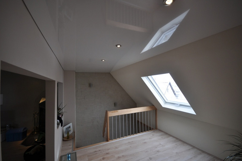 Все очень просто: ничего специально для обслуживания делать не нужно. Например, в гостиной воздействие на покрытие минимально: вам достаточно смахивать паутину, так как даже пыль на полотна не садится, и ПВХ, и ткань покрыты сверху пылеотталкивающим составом. В ванной свои особенности: влажность воздуха и перепады температур. Есть риск затопления и часто бывает нужно скрыть коммуникации. Протирать потолок при выпадении конденсата на него не обязательно, он высохнет сам, что удобно.