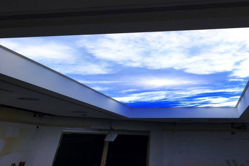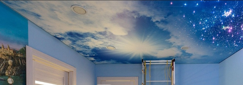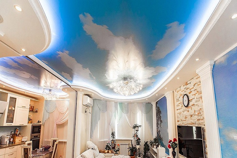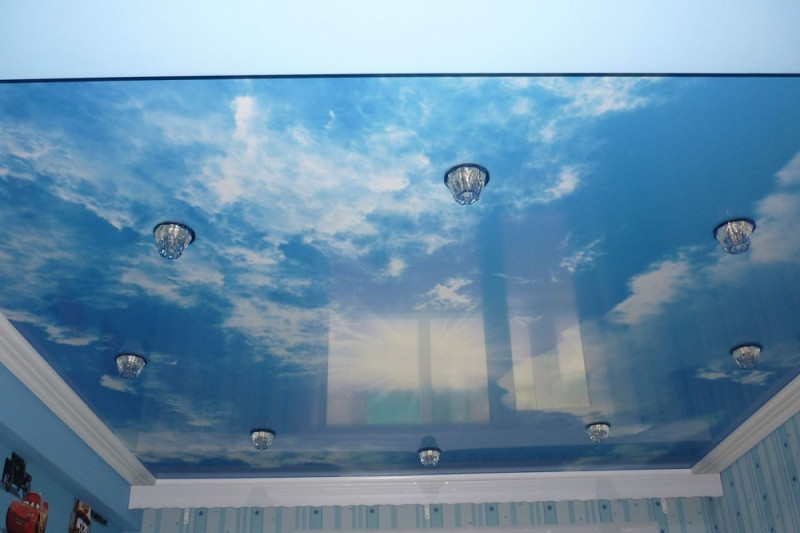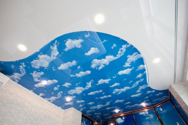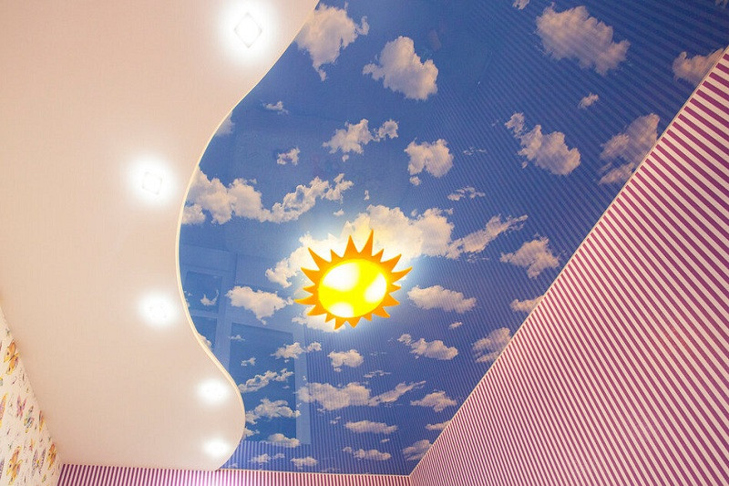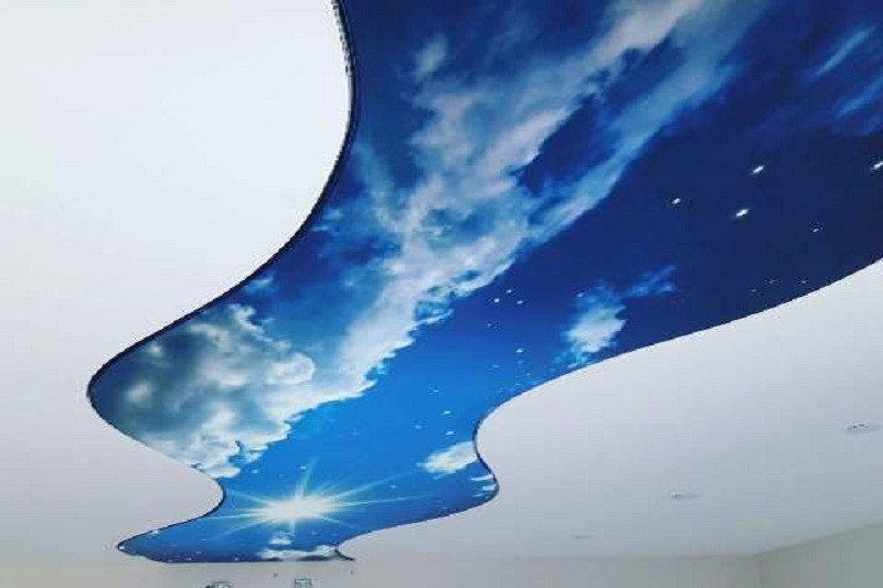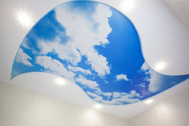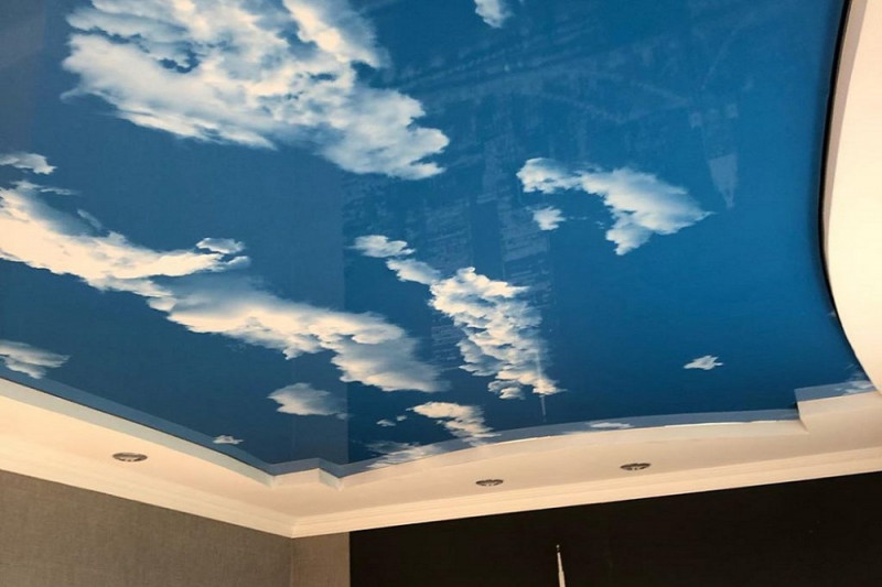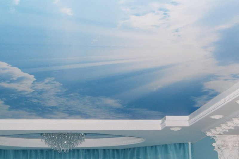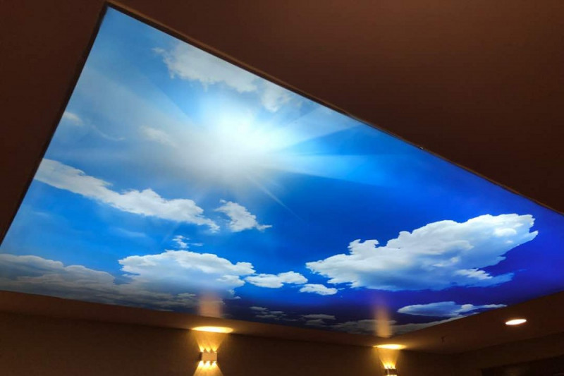 Небо с облаками – это натяжной потолок с фотопечатью. Она может быть двух вариантов: