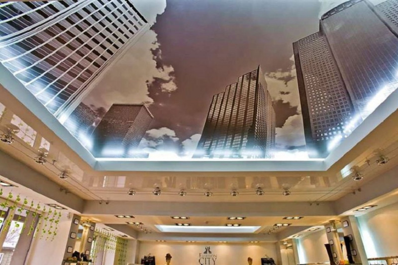 • Натяжные потолки 3D изготавливаются с помощью фотопечати, наносимой на ПВХ-пленку или тканевое полотно.