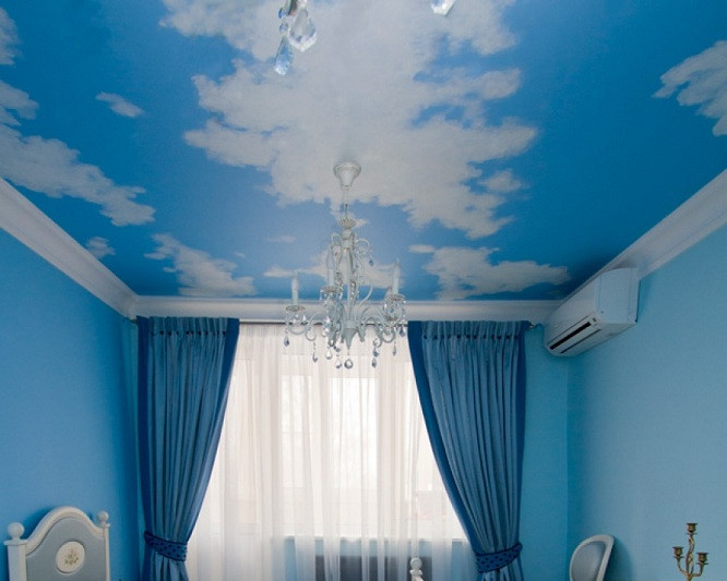 • Возможен монтаж полотна с принтом, например, неба с облаками.