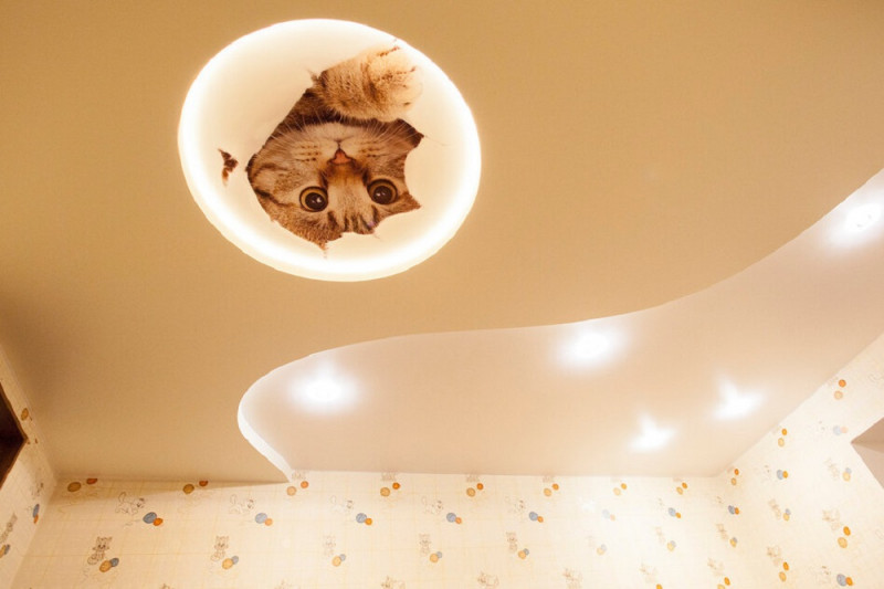 • Если дизайн надоест, вы всегда можете заменить белый потолок на цветной или наоборот.