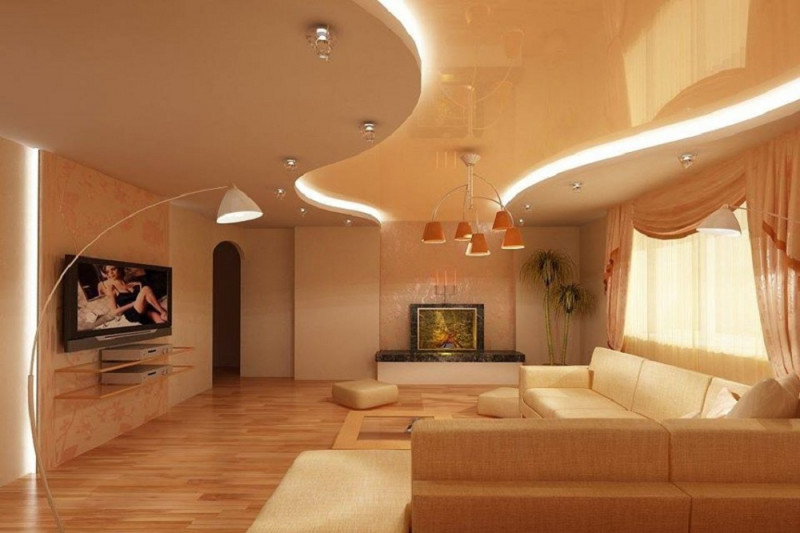 Натяжные потолки в гостиную