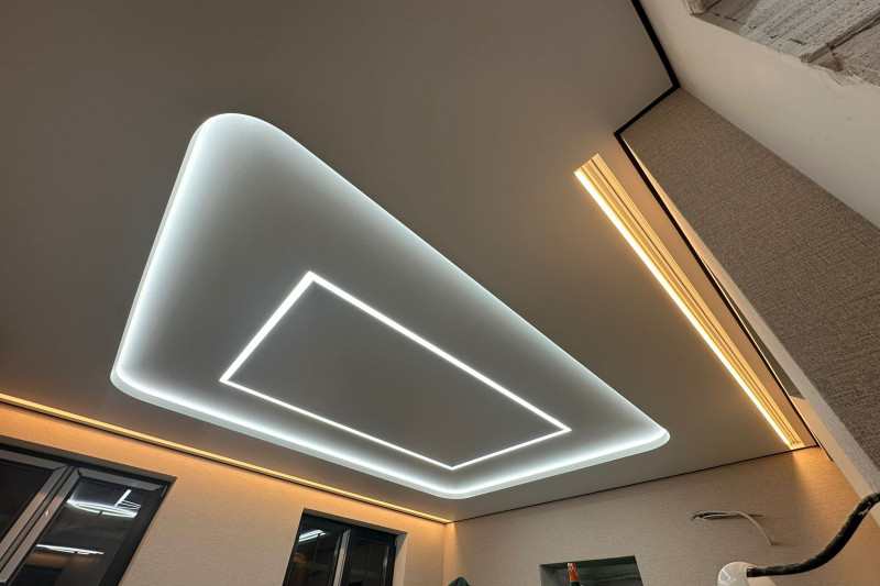 Узнать во сколько обойдется покрытие в два уровня до приезда мастера невозможно, так как в расчет принимается не только площадь комнаты. Цена во многом зависит от сложности.