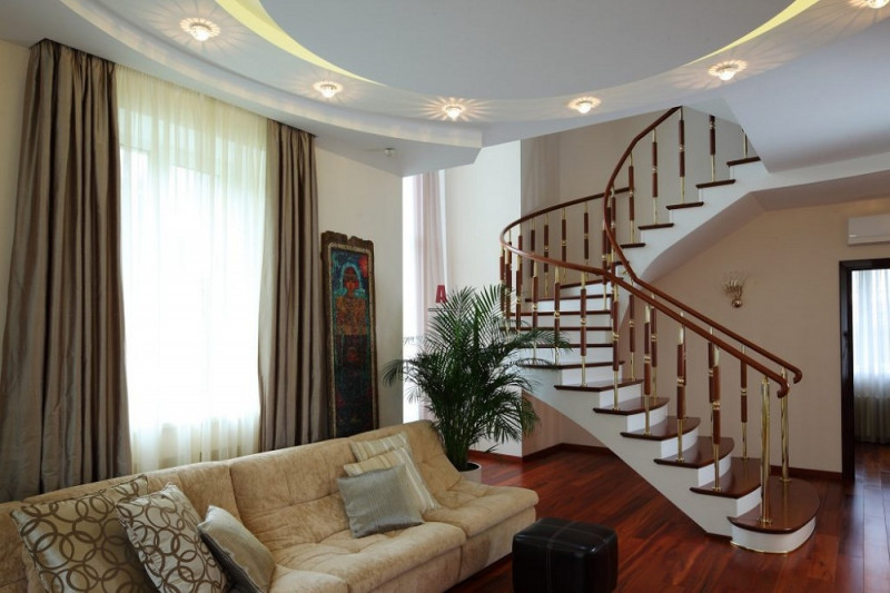 Узнать во сколько обойдется покрытие в два уровня до приезда мастера невозможно, так как в расчет принимается не только площадь комнаты. Цена во многом зависит от сложности.
