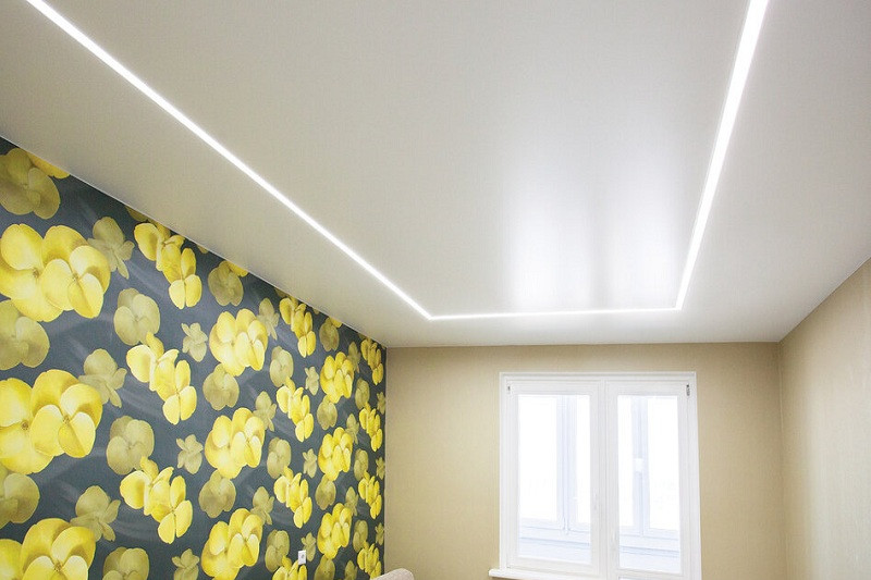 Такая установка позволяет полностью ликвидировать маскировочные ленты, потолочные плинтуса. Идеальное примыкание к стенам и геометрично выверенные углы без линз и провисов – это очень эстетично.