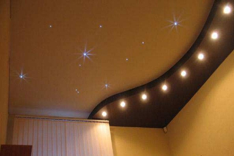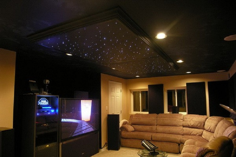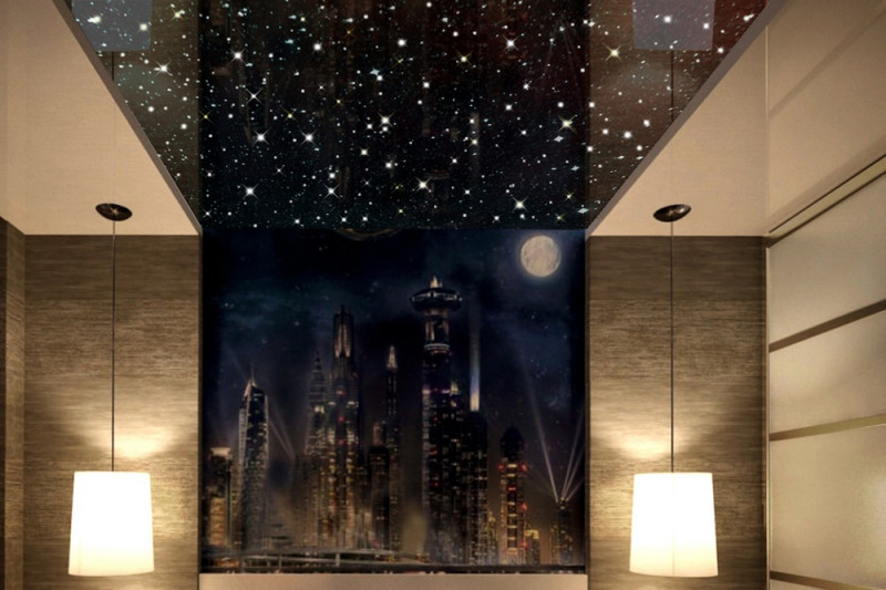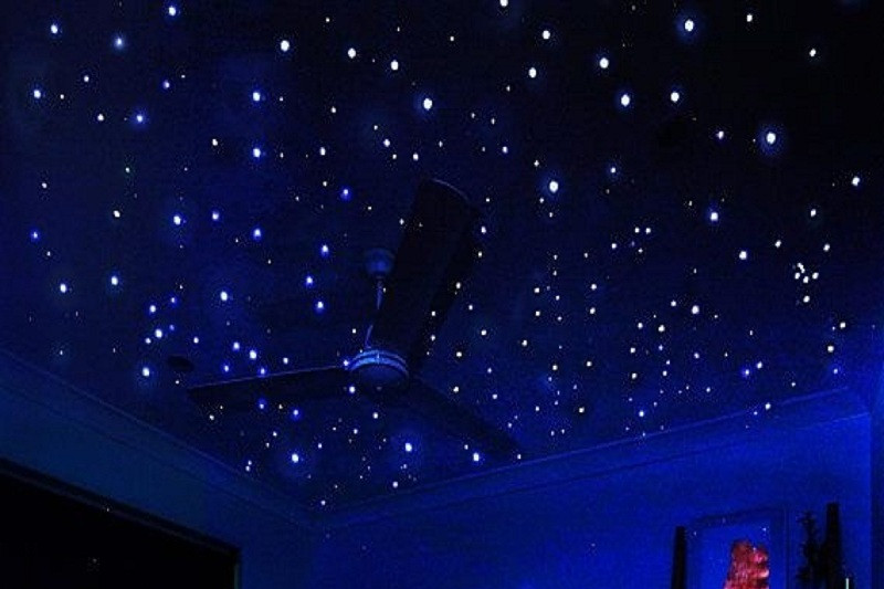 Натяжные потолки с эффектом звездного неба смотрятся завораживающе. Существует три варианта установки такого декора: