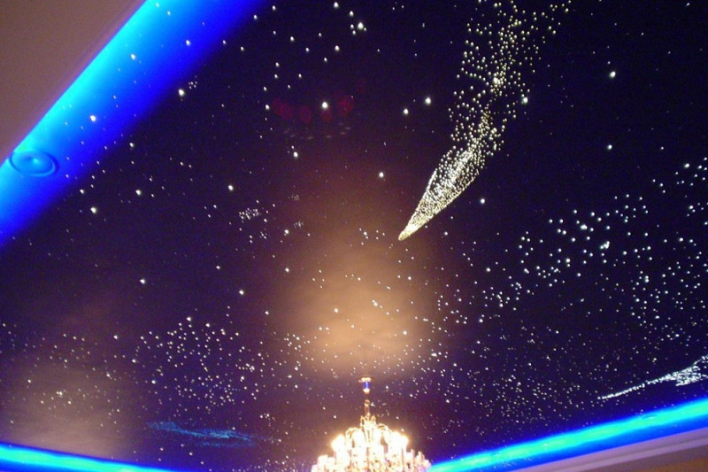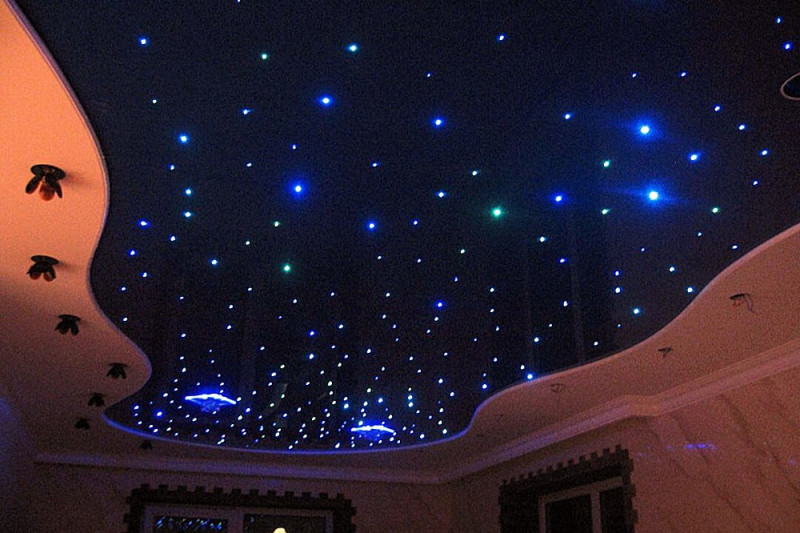 • Оптоволоконные нити – продеваются сквозь полотно с нанесенным на него изображением космоса. Самый дорогостоящий и длительный способ, но и самый зрелищный.