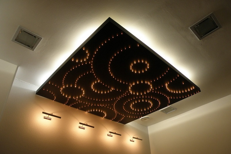Если нет планов перегружать освещением и/или декором интерьер, рассмотрите вариант установки парящих натяжных потолков.
