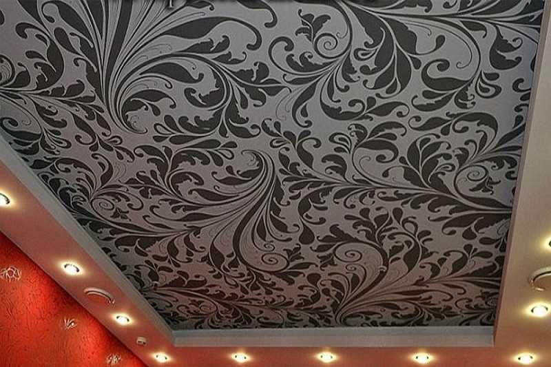 Одинаково хорошо сочетается как с тканевым натяжным потолком, так и с пленочным. В последнем случае подойдут более плотные премиальные полотна.